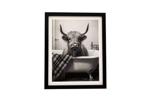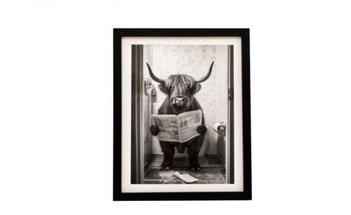 • Highland Cow Toilet Framed Canvas - 20x25cm